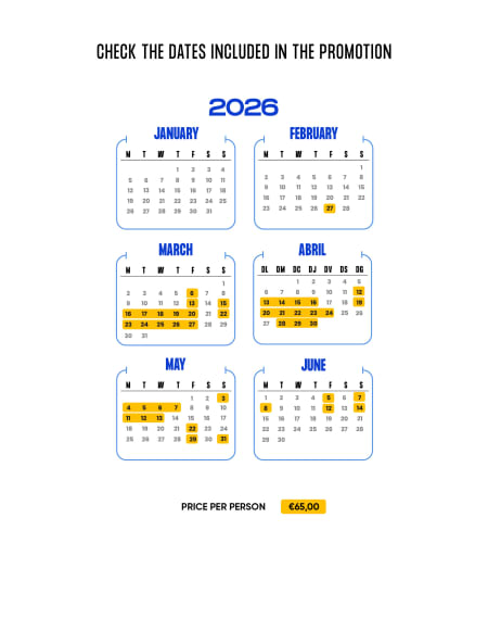 - December: 01–04; 08–10; 14–17 - The €65 rate is limited to 30 rooms per valid date for bookings made until 31/12/2026.